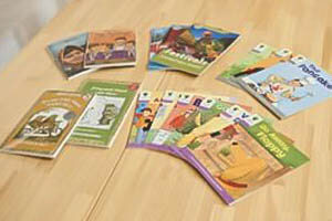多読活動のための読み物については、多読の方法を学んでもらうためもあり、ベーシックな読み物が中心です。